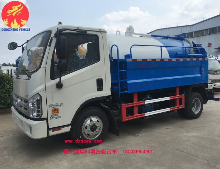 底盤說明:康瑞單排前翻駕駛室,3360mm軸距,全柴115馬力國五發動機,5檔,7.00R16鋼絲胎,動轉、ABS。罐體外形尺寸(直段長×直徑)(mm):3200×1350(其中罐體前部1200mm為清水罐).污水罐介質:液態污物,密度800千克/立方米,載質量2100kg,罐體有效容積2.75立方米.清水罐介質:水,密度1000千克/立方米,載質量1500kg,罐體有效容積1.57立方米.兩罐不能同時滿載。 |