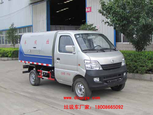 車輛名稱: 長安密閉式桶裝垃圾車 整車型號: SZD5026XTYS5(炎帝牌)