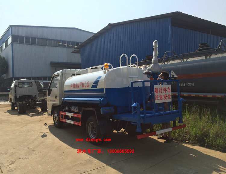 改裝部分:標配前沖、后灑、側噴、工作平臺、綠化高炮、自流閥、消防接口,輸水管3米2根,8噸以上罐體帶高位花灑2個,億豐泵或金龍泵,控制方式為手動。選裝氣動閥門控制;高位花灑,大鴨嘴,藥盤,罐體側面加裝萬向可調節噴頭,罐體后部壓塵噴灑裝置,兩個圓警燈或長警燈,LED箭頭燈,泵可選裝威龍泵或農藥噴霧裝置。