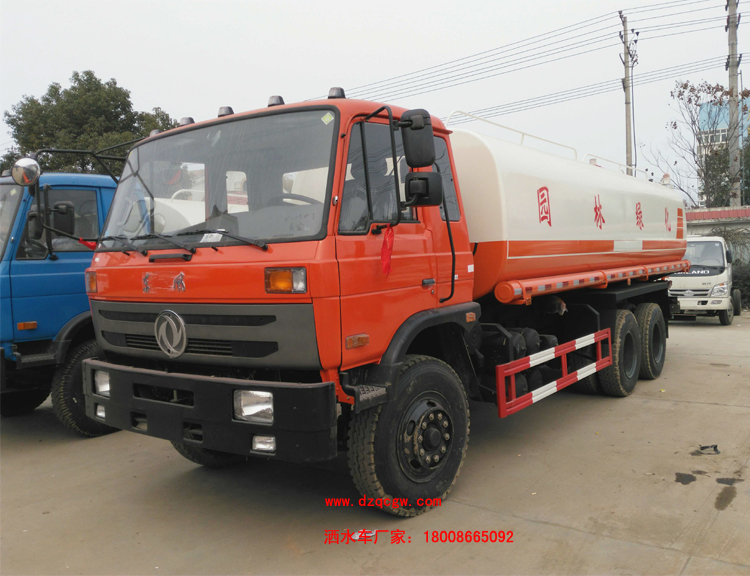 底盤(pán)說(shuō)明:東風(fēng)153型老款平頂駕駛室,玉柴220馬力或康機(jī)210國(guó)四發(fā)動(dòng)機(jī),陜齒八檔變速箱,280mm雙層車(chē)架,5T/10T前后橋,軸距4350+1300mm,10.00R20鋼比胎,帶斷氣剎,動(dòng)力轉(zhuǎn)向,排氣制動(dòng)。水罐有效容積:16立方米。