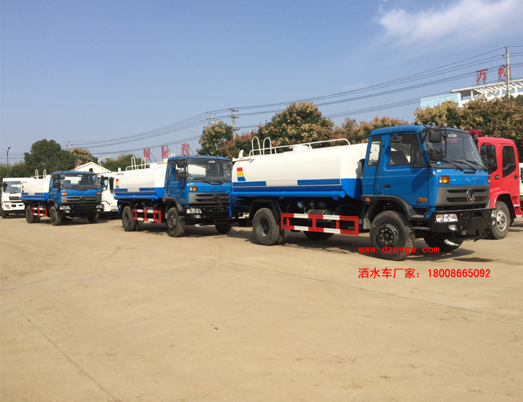 底盤說明:153豪華駕駛室,軸距4500mm或4700mm,4950mm,康機或玉柴國四發動機,大同6檔變速箱,5t前橋/10t后橋,10.00尼龍胎,車架250雙層。罐體有效容積:9.97立方米。帶免征。 專用功能:該多功能灑水車適合于各種路面的灑水、噴霧、降溫、除塵、沖洗塵埃臟物,亦可用于園林綠化、市政環衛、路面養護及應急消防、運輸飲用水等。專用部分由罐體、水泵、球閥、輸水管道、灑水裝置等部件組成。水泵、取力箱、球閥均為國家定型產品,具有性能良好,工作可靠、壓力高、流量大、油耗低等特點。 改裝部分:標配前沖、后灑、側噴、工作平臺、綠化高炮、自流閥、消防接口,輸水管3米2根,8噸以上罐體帶高位花灑2個,億豐泵或金龍泵,控制方式為手動。選裝氣動閥門控制;高位花灑,大鴨嘴,藥盤,罐體側面加裝萬向可調節噴頭,罐體后部壓塵噴灑裝置,兩個圓警燈或長警燈,LED箭頭燈,泵可選裝威龍泵或農藥噴霧裝置。 |