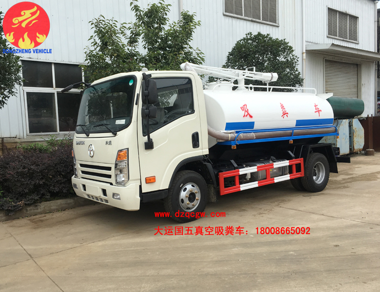 底盤說明:大運單排豪華駕駛室,3300mm軸距,YN33CRE1云內115馬力,YN38CRE1云內130馬力,YC4FA130-50玉柴130馬力,7.50R16鋼絲胎,萬里揚五檔變速箱,ABS,尿素罐,電動車窗,中控,斷氣剎,方向助力。罐體有效容積:5.0立方米。 專用部分:標配取力器、隨州真空吸糞泵(8mm以上建議加裝雙聯真空泵)、油水分離器、四通閥、洗手裝置、罐體后封頭閘閥控制自流口1個、糞罐、帶視糞窗1個、1根6米吸糞管、普通油漆。 吸糞管 : 可360度旋轉,抽滿糞罐時間:≤5min,吸程:≥6m。自吸自排,壽命長,工作速度快,容量大,運輸方便,適用于收集運輸糞便、泥漿、原油等液體物質。P.S.可根據客戶要求加裝灑水功能,水罐糞罐獨立分倉,即可吸糞又可灑水,一車兩用。加裝水箱或工具箱,加裝液位報警裝置。 |