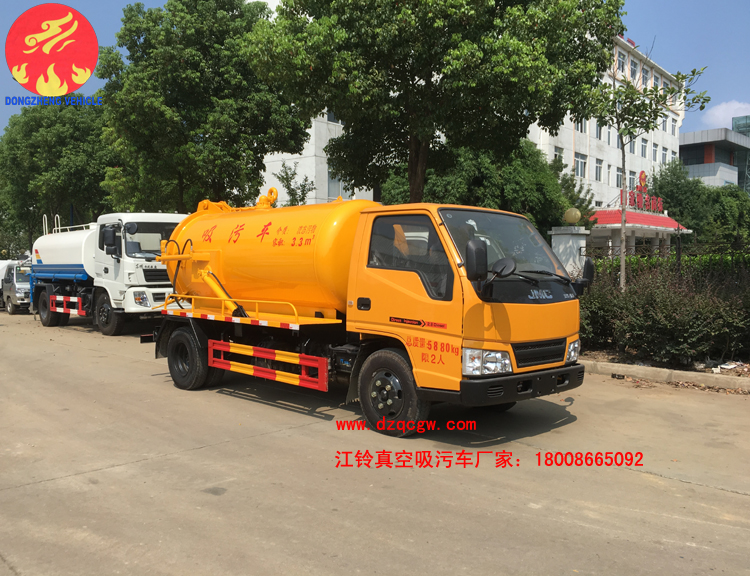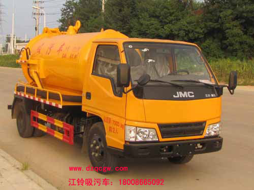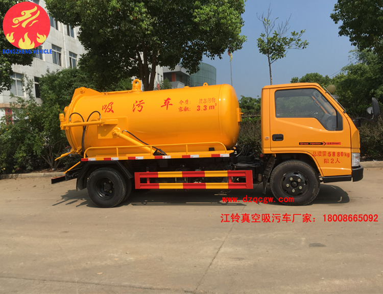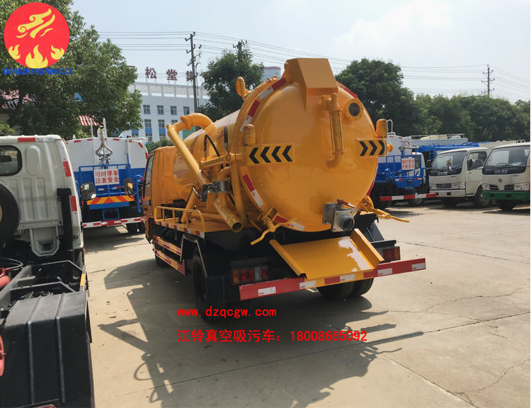 底盤說明江鈴單排可翻轉駕駛室,國五江鈴115馬力柴油發動機,7.00鋼絲胎,油剎,五檔箱,后橋4噸,帶排氣制動,ABS。吸污罐體有效容積: 4.2立方米,介質:液態污物,罐體外形尺寸(直段長×直徑)(mm):3000×1350。
